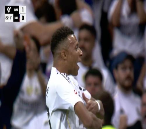 西甲第10轮国家德比,皇家马德里主场对阵巴塞罗那,上半场姆巴佩破门为皇马取得领先,至此,姆巴佩对阵巴萨已打入12...